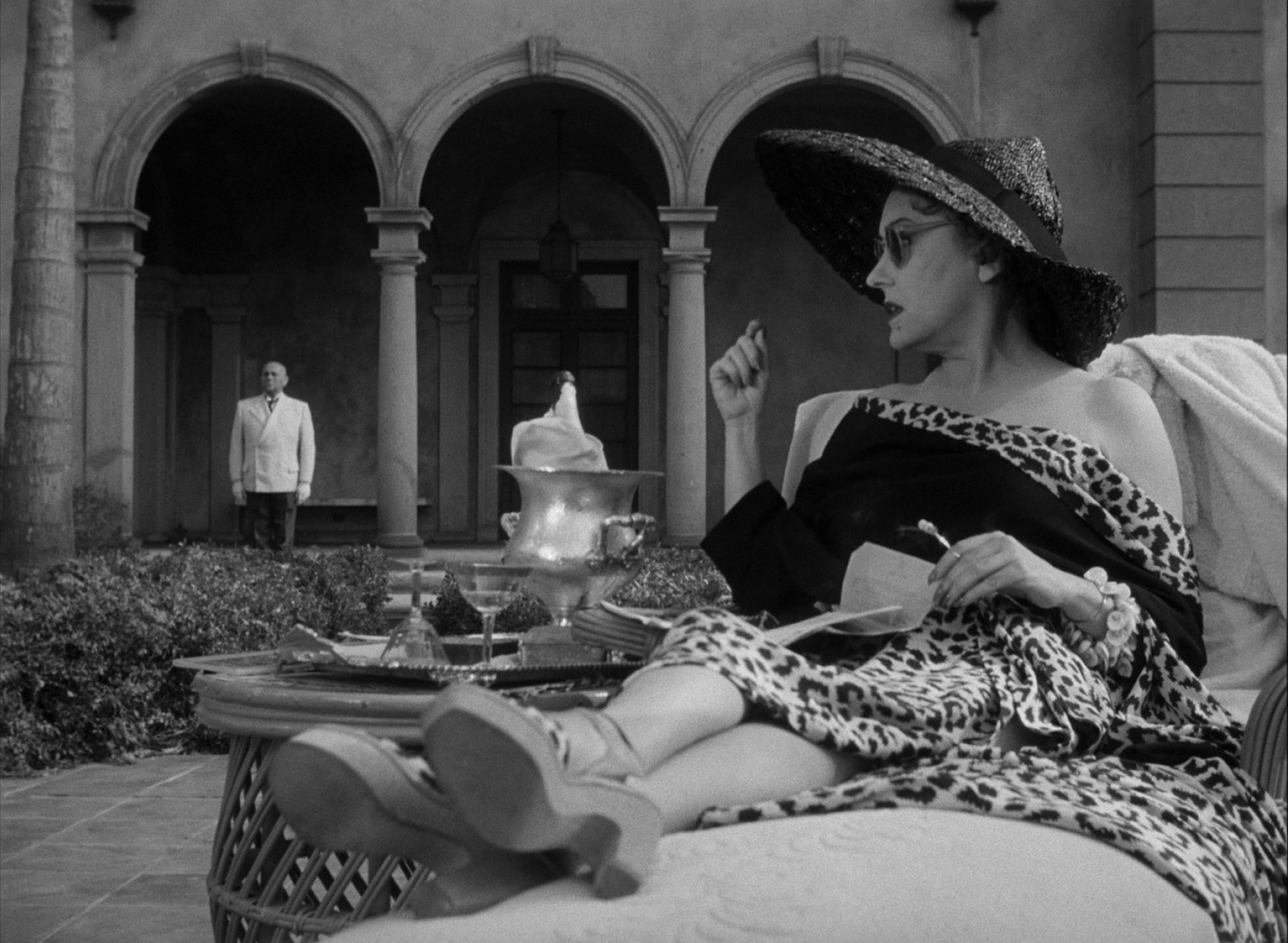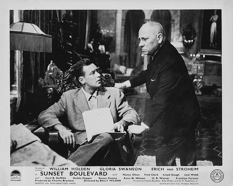 Pero la mansión a la que llega no está abandonada, sino que en ella habitan un extraño mayordomo, Max (Erich Von Stroheim) y la señora de la casa, una grandiosa Norma Desmond (Gloria Swanson), otrora estrella del cine mudo. Un personaje histriónico, sobreactuado y egoísta, cuyo único objetivo es utilizan al ignorante guionista que acaba de caer en sus garras… aunque él piense todo lo contrario.